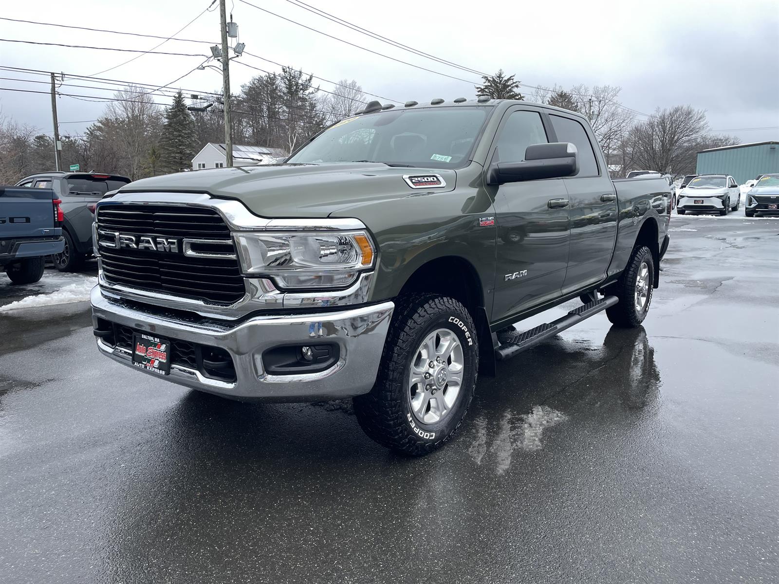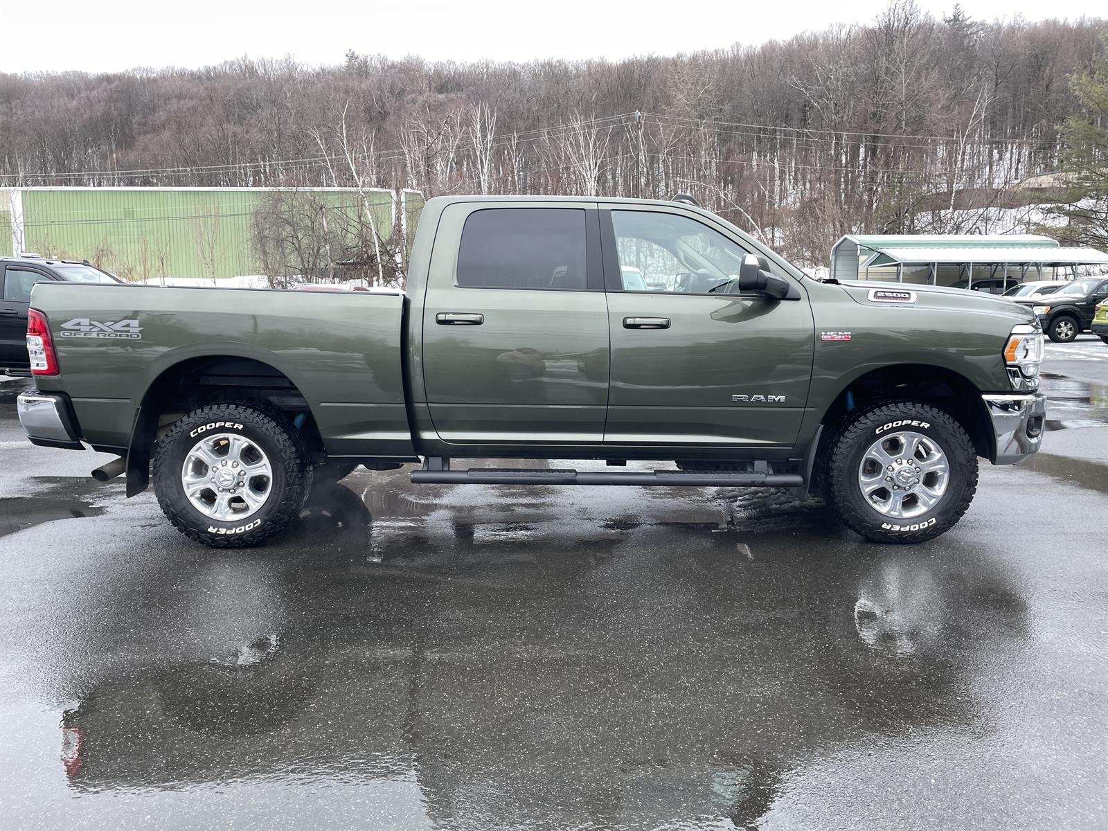 2020 RAM 2500 Big Horn4WD 71,654 miles $28,995.00 calculate payments Stock #: 5751Transmission: 8-Speed Shiftable AutomaticEngine: HEMI 6.4L V8 410hp 429ft. lbs.VIN: 3C6UR5DJ2LG121322 Options:9 Alpine Speakers w/SubwooferClearance LampsCloth 40/20/40 Premium Split Bench SeatFront and Rear Rubber Floor MatsInstrument Panel Mounted Switch BankParksense Rear Park Assist SystemRemote Start SystemSnow Chief GroupSpray In BedlinerLT275/70R18E OWL On/Off Road TiresAirbags - Front - DualAir Conditioning - Front - Single ZoneAir Conditioning - FrontAirbags - Passenger - Occupant Sensing DeactivationAirbags - Front - SideAirbags - Front - Side CurtainAudio Streaming: BluetoothAudio - Antenna: MastPower BrakesAirbags - Rear - Side CurtainAudio Voice RecognitionAudio Auxiliary Input: USBAudio Auxiliary Input: JackAudio - Radio Data SystemAudio - Radio: AM/FMAudio - Radio: Touch Screen DisplayFloor Material CarpetFloor Mats FrontFloor Mat Material Vinyl/rubberFront Brakes Ventilated DiscAssist Handle FrontRear Brakes Ventilated DiscBraking AssistAudio System 6 SpeakersAudio - Speed Sensitive Volume ControlEmergency Braking PreparationChild Seat Anchors LATCH SystemArmrests - Front CenterRear Floor MatsReading Lights FrontChild Safety LocksBraking assist hill start assistABS Brakes (4-Wheel)Electronic Brakeforce DistributionAssist Handle RearCruise ControlSteering Wheel Tilt-AdjustableMulti-function Remote Keyless Entry With Panic AlarmHeadlamp Bezel Color ChromeStorage Accessory HookSteering Wheel Mounted Controls Cruise ControlsGrille Color Chrome SurroundPower SteeringStorage Under Rear SeatsSteering Wheel Mounted Controls PhoneRear View CameraLicense Plate Bracket FrontStorage Door PocketsMulti-function Remote Keyless EntryGrille Color BlackDriver Seat Manual Adjustments: 4Drivetrain Oil Cooler: AuxiliaryEngine Hour MeterEngine Push-Button StartRear View Monitor In DashActive Grille ShuttersFront 12V Power Outlet(s)Driver Seat Manual Adjustments: ReclineDrivetrain 4WD Type: Part TimeEngine 50 State EmissionsOverhead ConsoleDrivetrain Transfer Case: Electronic Hi-Lo Gear SelectionEngine Battery SaverSteering Wheel Mounted Controls Multi-Function Screen ControlsAdjustable Rear HeadrestsEngine Alternator: 180 AmpsSteering Wheel Mounted Controls Voice Recognition ControlsTrip OdometerWindows Solar-Tinted GlassExternal Temperature DisplayRear Bumper Color ChromeNumber Of Rear Headrests 3Fuel Economy Display RangeCompassWarnings And Reminders Low Fuel LevelInside Rearview Mirror Manual Day/NightPassenger Seat Manual Adjustments: 4Phone Voice ActivatedFuel Economy Display MPGHeadlights Auto Delay OffExterior Entry Lights Puddle LampsExterior Mirrors Manual TelescopingSeatbelts Seatbelt Force Limiters: FrontExterior Mirrors PowerHeadlights Auto On/OffTraction Control With Trailer Stability AssistMirror Color BlackSecurity Engine ImmobilizerSeatbelts Seatbelt Warning Sensor: Driver And PassengerHeadlights HalogenStability ControlFront Seatbelts: 3-PointElectronic Messaging Assistance With Read FunctionSeats Front Seat Type: 40-20-40 Split BenchSpare Tire Underbody Mount LocationAuxilliary Transmission Fluid CoolerExterior Mirrors Towing MirrorsFront Suspension Type: Multi-LinkTraction ControlSeatbelts Second Row 3-PointPassenger Seat Manual Adjustments: ReclineOne-Touch Windows: 2Exterior Entry Lights Security Approach LampsRear Seats BenchHeadlights Quad HeadlightsSeats Cloth UpholsteryVanity Mirrors Illuminated PassengerClockExterior Mirrors Integrated Turn SignalsMulti-Function DisplayDigital OdometerSeatbelts Emergency Locking Retractors: FrontSeatbelts Emergency Locking Retractors: Front And RearExterior Mirrors Manual FoldingWindow Trim BlackNumber Of Front Headrests 2Phone Wireless Data Link BluetoothWarnings And Reminders Low Oil LevelCrumple Zones FrontElectronic Messaging Assistance With Voice RecognitionTachometerSeatbelts Seatbelt Pretensioners: FrontAuto-LockRoll Stability ControlFront Suspension Classification: Solid Live AxleWarnings And Reminders Maintenance ReminderSpare Wheel Steel Rim TypeSpare Tire FullsizeCargo Bed LightRear Seats Folds UpRear Seats Rear Heat: VentsDaytime Running LightsFront Headrests AdjustableExterior Mirrors HeatedTransmission Tow/Haul ModeSuspension Rear Gas Shock AbsorbersSuspension Rear Coil SpringsSuspension Front Spring Type: Coil SpringsSuspension Frequency Selective Damper ControlWindows Privacy GlassTowing And Hauling Trailer Hitch: Class VPower Windows: With Safety ReverseWindows Laminated Glass: AcousticWindows Front Wipers: Variable IntermittentSuspension Stabilizer Bar(s): FrontTowing And Hauling Trailer Wiring: 7-PinSuspension Stabilizer Bar(s): RearTowing And Hauling Trailer Wiring: 4-PinTowing And Hauling Cargo Tie DownsTailgate RemovableTowing And Hauling Intergrated Trailer Brake ControllerWindows Lockout ButtonSatellite Communications UconnectSuspension Front Shock Type: Gas Shock Absorbers4.10 Axle RatioAnti-Spin Rear DifferentialRear Window DefrosterFog LampsTow HooksTailgate Power LockingPickup Box Lighting18 x 8.0 In. Polished Aluminum WheelsHeated Seats and Wheel GroupPickup BoxOff Road PackageOlive Green Pearl Coat PaintBed Utility GroupBig Horn Level 1 Equipment GroupRear Wheelhouse LinersIn Car Entertainment Infotainment screen size: 5 in.Quick Order Package 2ZZUConnect 4 with 8.4 In. Display Questions? Use this form: Full Name: Email: Message: I would like information on the 2020 RAM 2500 Big Horn stock# 5751 X Form Response Default Body